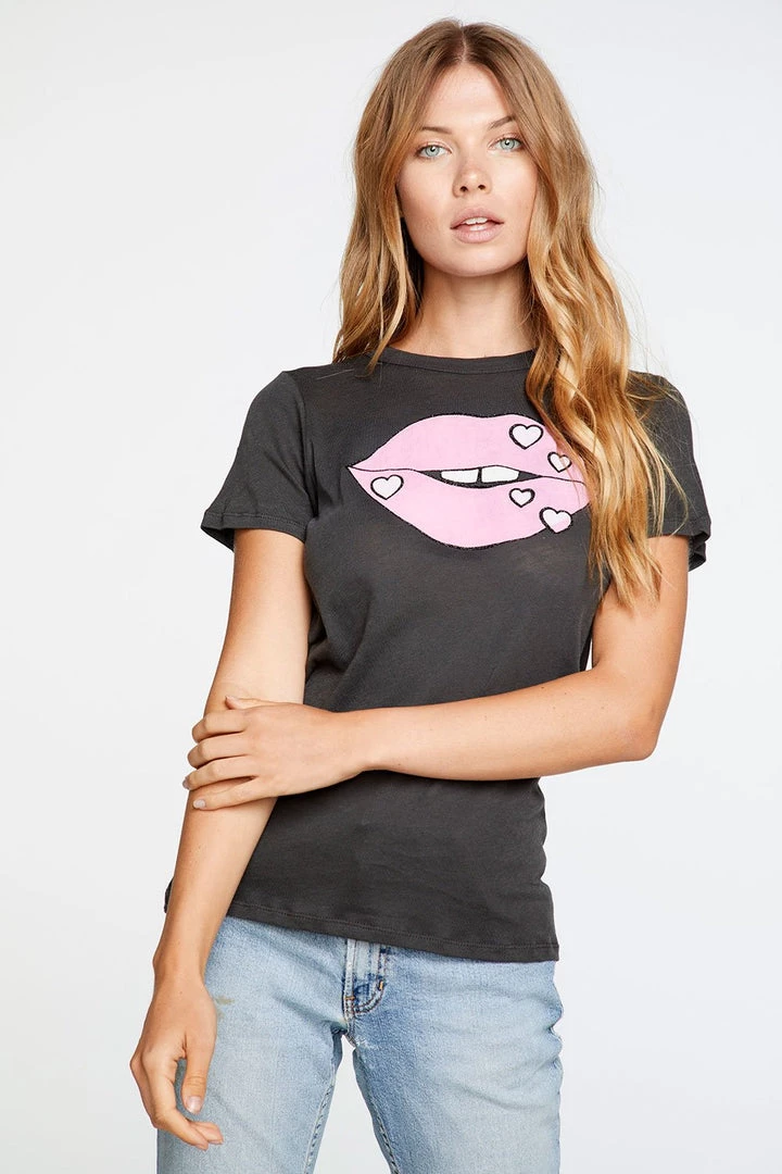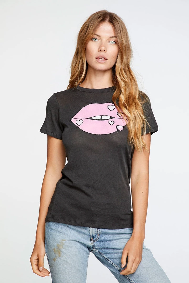 Our cult-favorite lip print tee just got a mini makeover. A.k.a we added little heart print details for a sweet surprise.