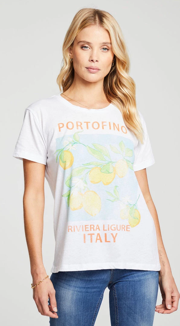 Our Portofino recycled vintage jersey crew neck lets the world know your destination of choice.