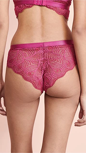 Cosabella’s ‘Sugar’ Hotpant creates a modern vision of romance with exceptional peacock lace. Pair with matching ‘Sugar’ bralette and garter belt. Designed in mind as a sugary sweet intimates set, the beloved pieces are meant to be worn together. The hotpant panty features a wide, satin stretch waistband with lightweight, sheer lace in a cheeky silhouette. Cotton gusset.