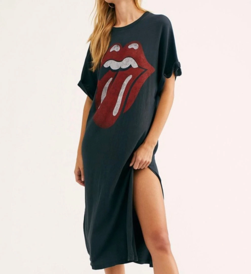 Designed in an exclusive collaboration by Daydreamer for Free People, this super soft cotton knit tee featuring a Rolling Stones graphic in a longline maxi silhouette is the perfect addition to your wardrobe no matter the season.