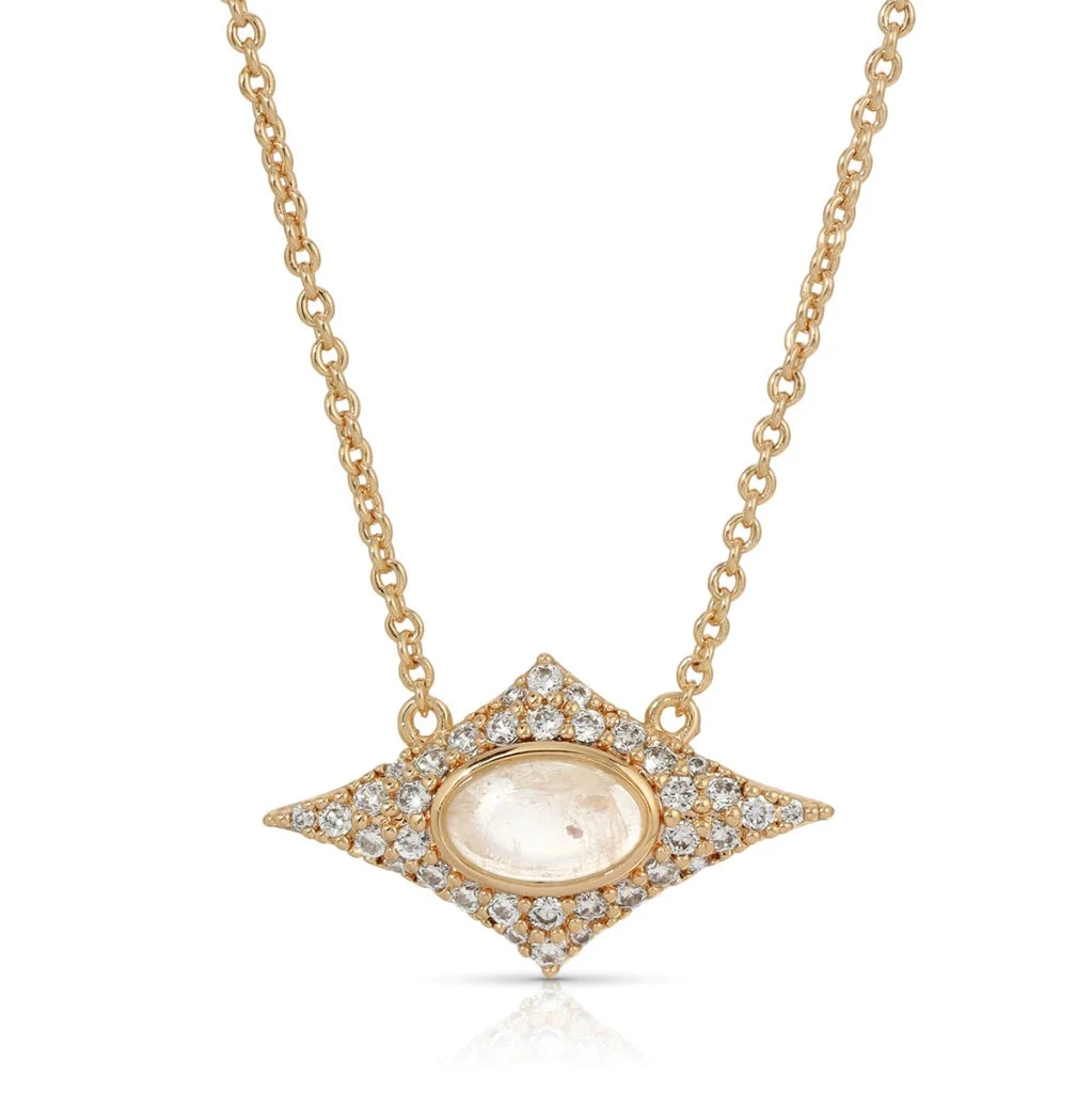 The Astra Gem Necklace is all dazzling beauty, a narrow pave-lined diamond with elegant curves and a striking oval gem as centerpiece. Itβs the perfect finish to an effortlessly glamorous look!