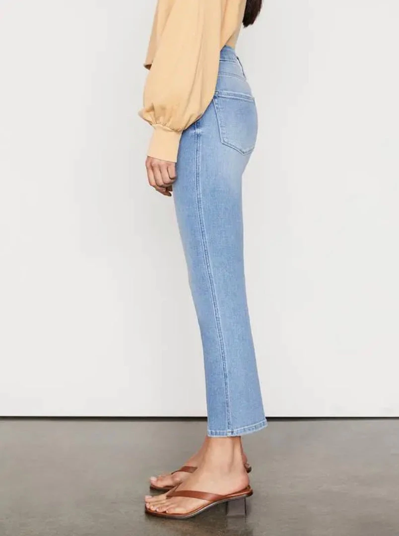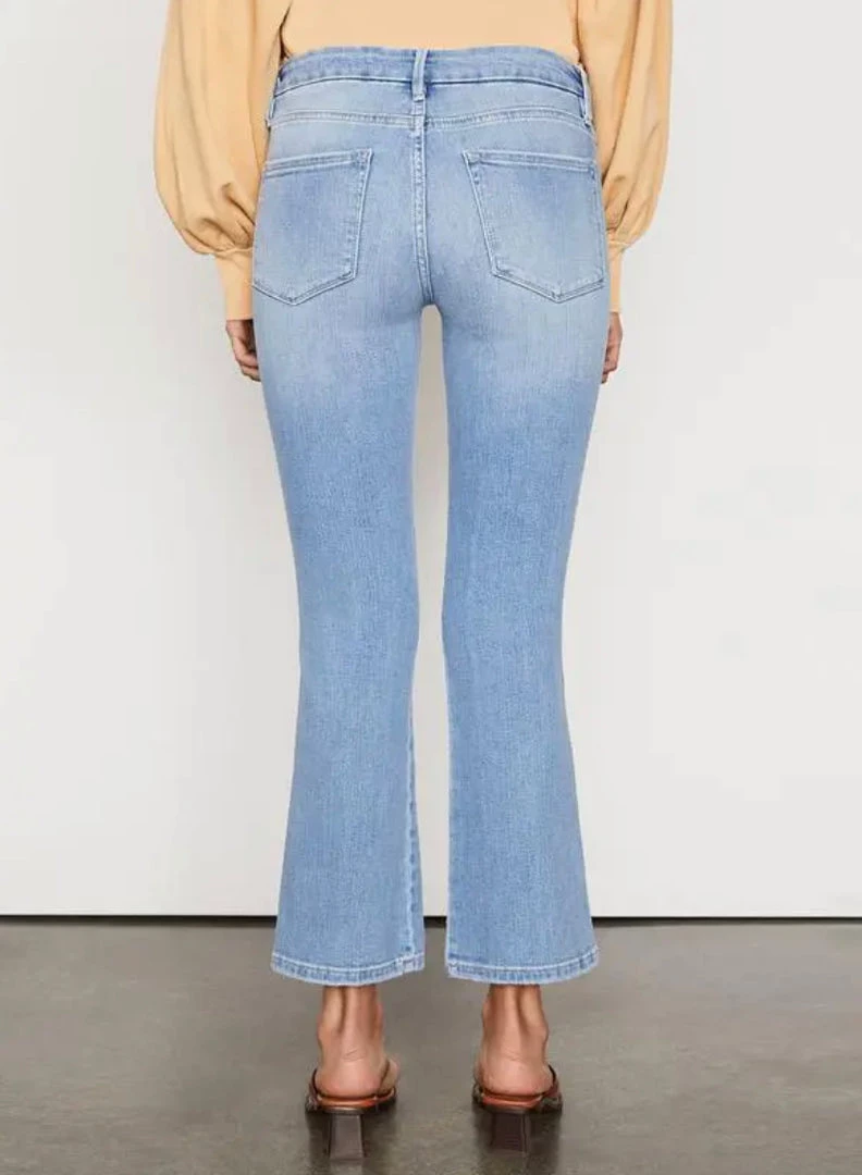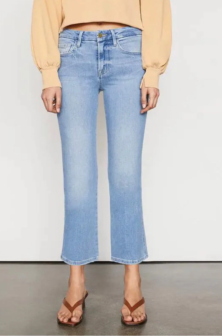 A FRAME best-selling fit, this cropped boot-cut jean features a comfortable contour waistband that’s form-fitting at the top and tapers out from the knee with frayed hems as the finishing touch for an undone feel—tuck in a voluminous top or lightweight button-down tucked in for effortless polish.