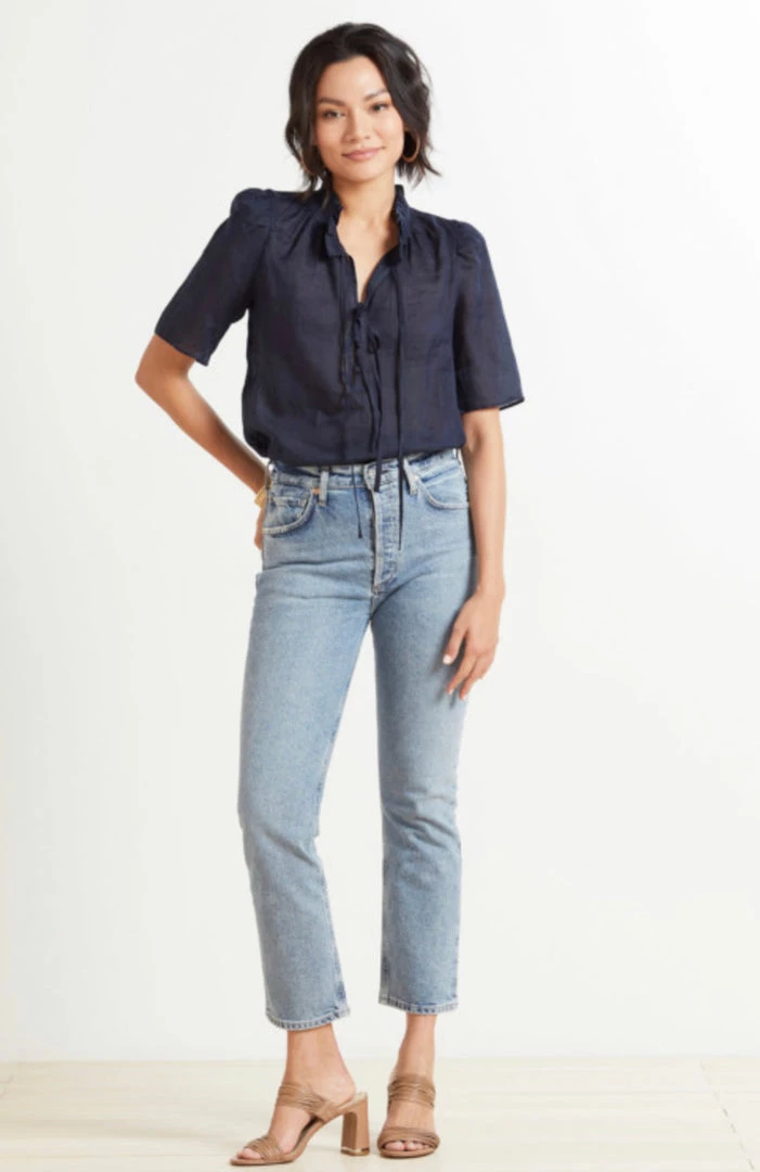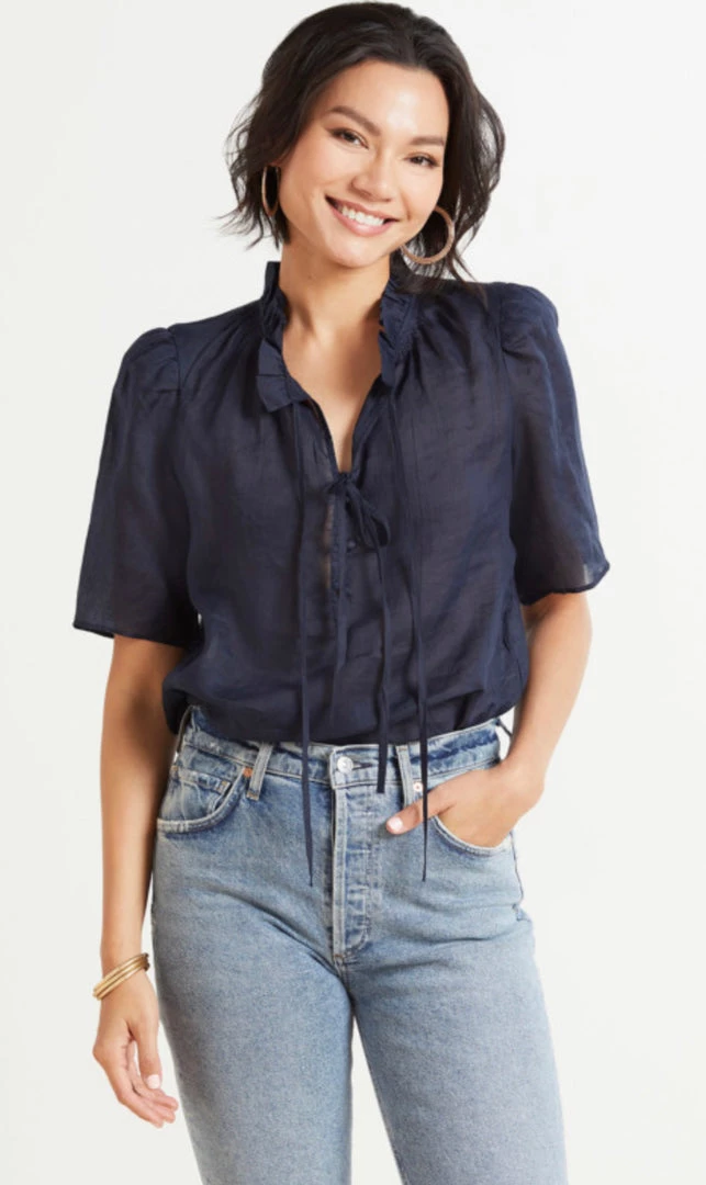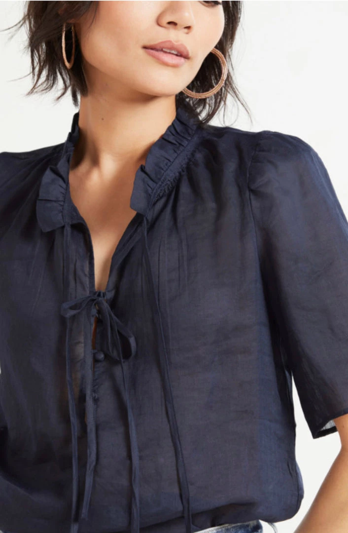 Pair the Frame Women’s Tie Neck Ruffle Popover with a skirt or jeans for effortless styling.