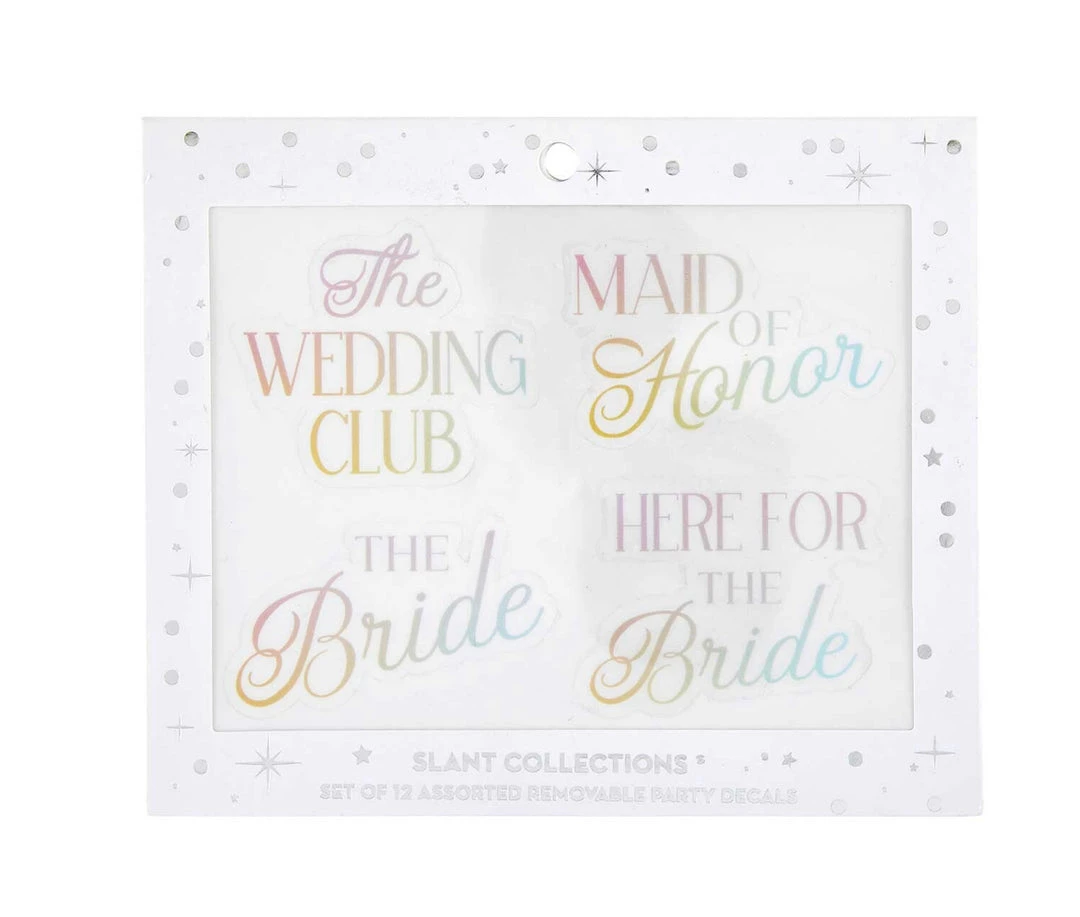 Mark your glass in style with these reusable wine glass decals! Contains assortment of 4 designs (12 decals total).
