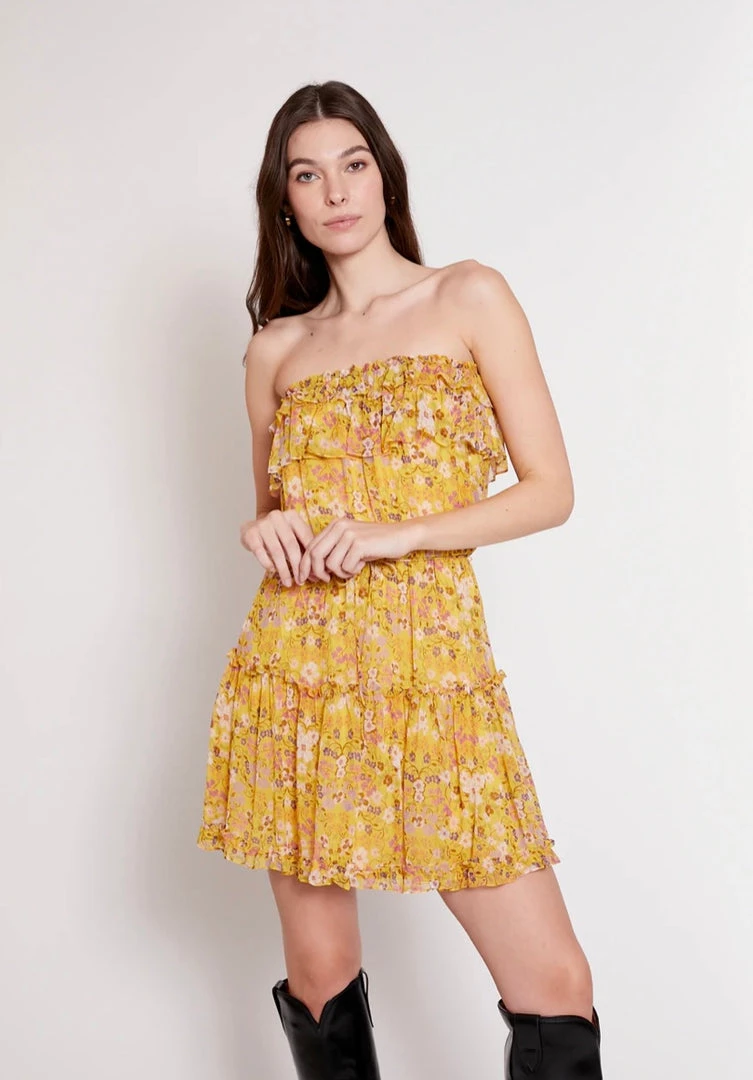 Jump into summer with he Marley Dress. The perfect pop of color for your summer wardrobe, with a flattering cinched belted waistline and beautiful ruffling throughout.
