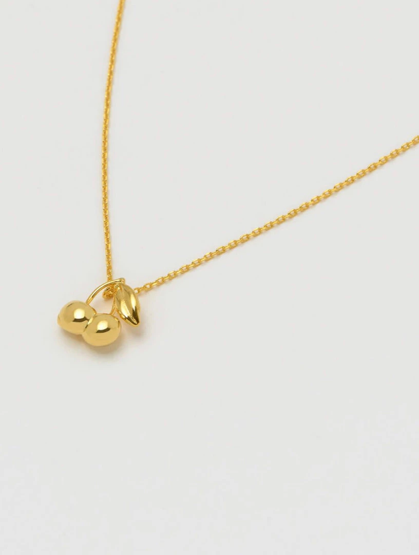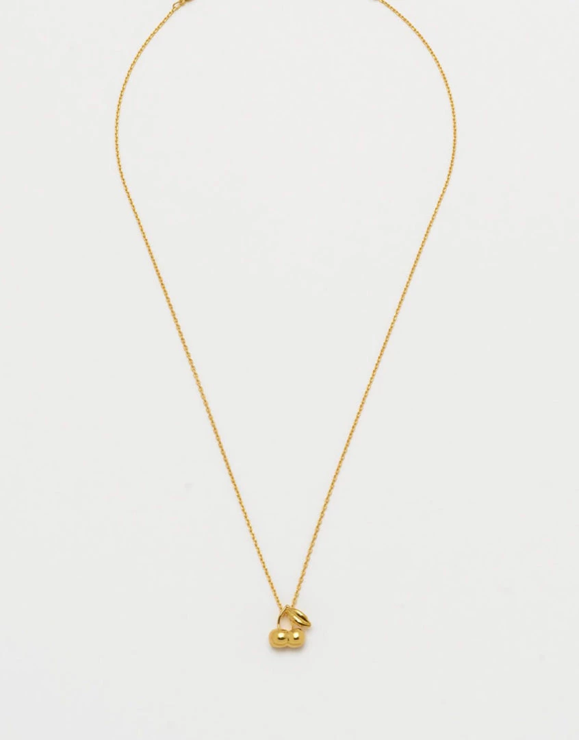 This playful piece is a chic and classic accessory that’s perfect for dressing up your summer looks. Minimalist in design this delicate gold plated necklace is completed by a dainty duo of cherries.
