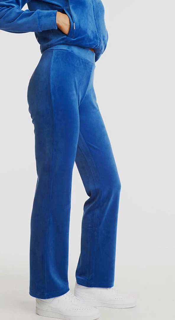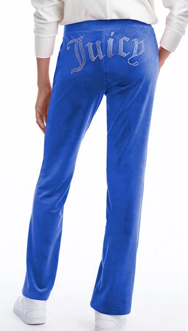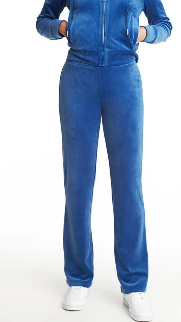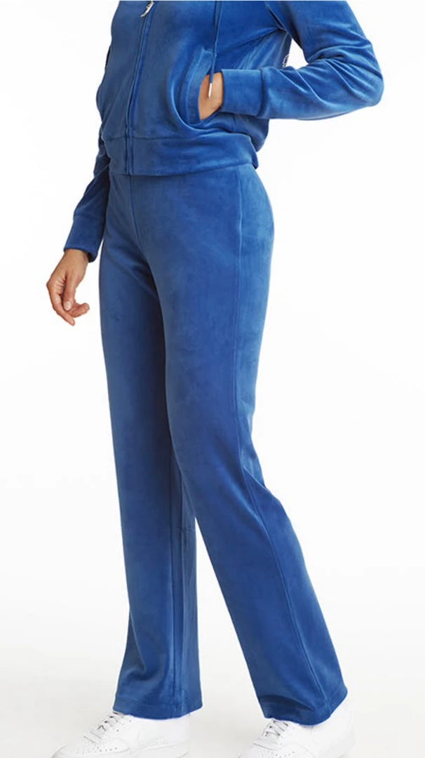 Whether you choose to pair with our matching track jacket or sport solo, our original luxe velour track pant will go the distance. Details include an elastic waistband and bling logo that covers your assets.