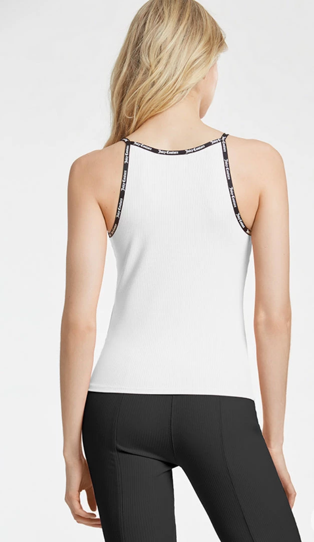 A dainty micro-ribbed tank and the most subtle logo trim around the neckline and arms. Great to include in your every day look!