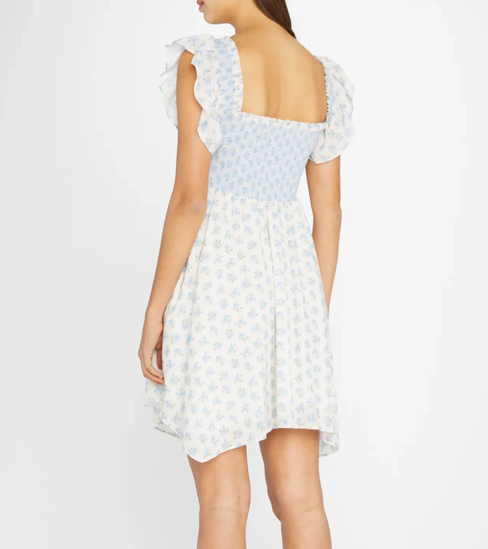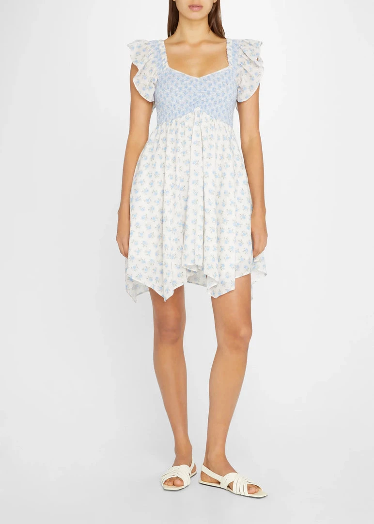 Flaunting voluminous ruffled sleeves, the Athalia dress by LoveShackFancy fits and flares from the smocked bodice to the asymmetrical hem.