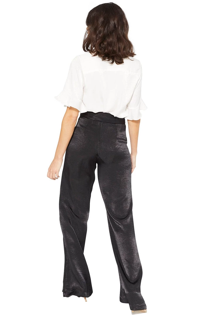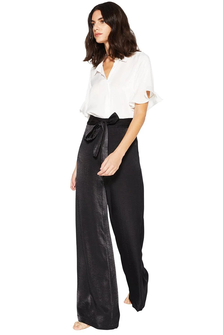 The Zadie is our feminine take on the classic white button-down shirt. Cut from silky satin with short, ruffle trimmed sleeves. This timeless style is your new must-have closet staple for this season and beyond.