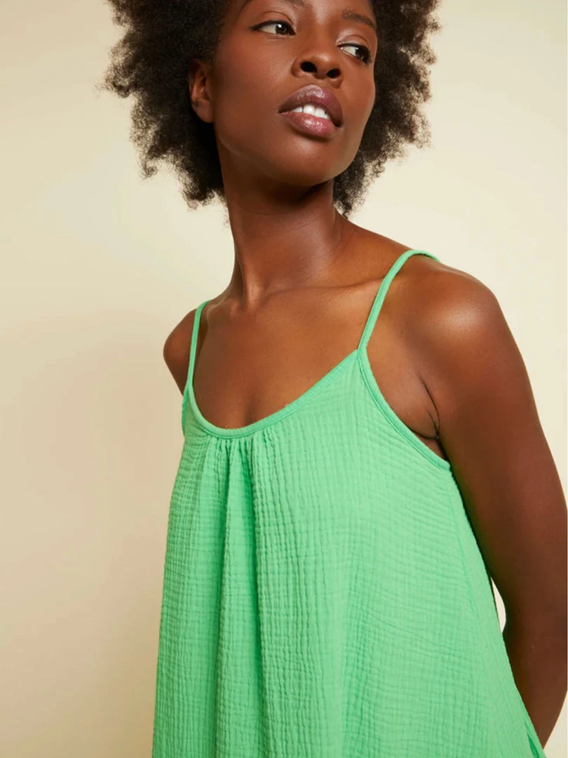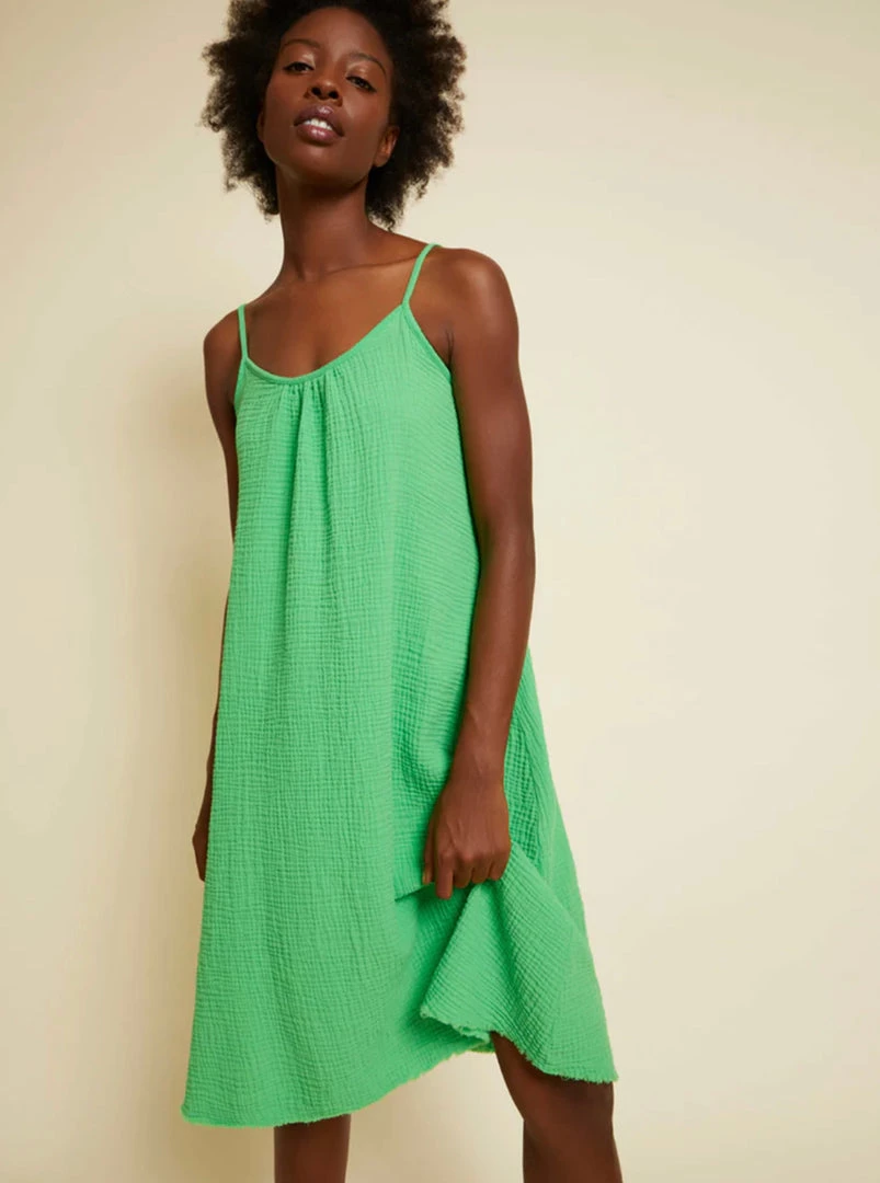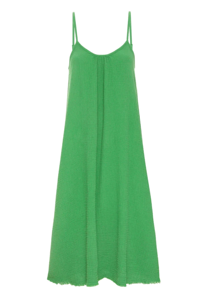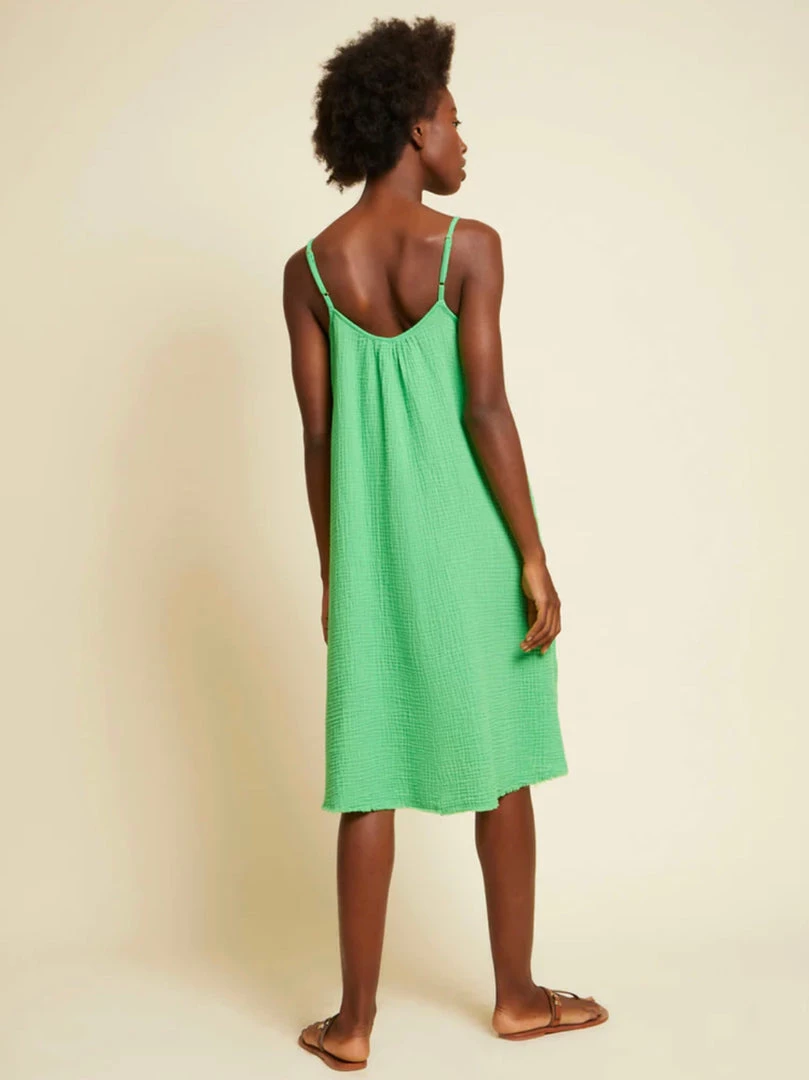 You asked and we listened. This is a knee length version of our most sought after Double Gauze dress, the Lila. Same oversized trapeze silhouette and raw hem, new length.