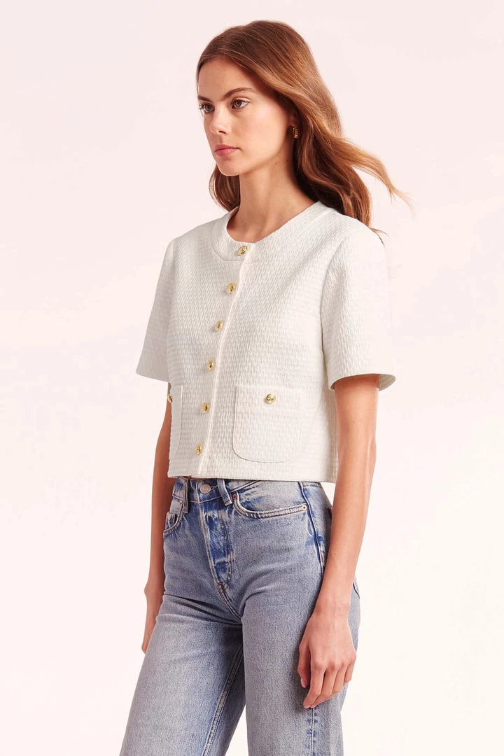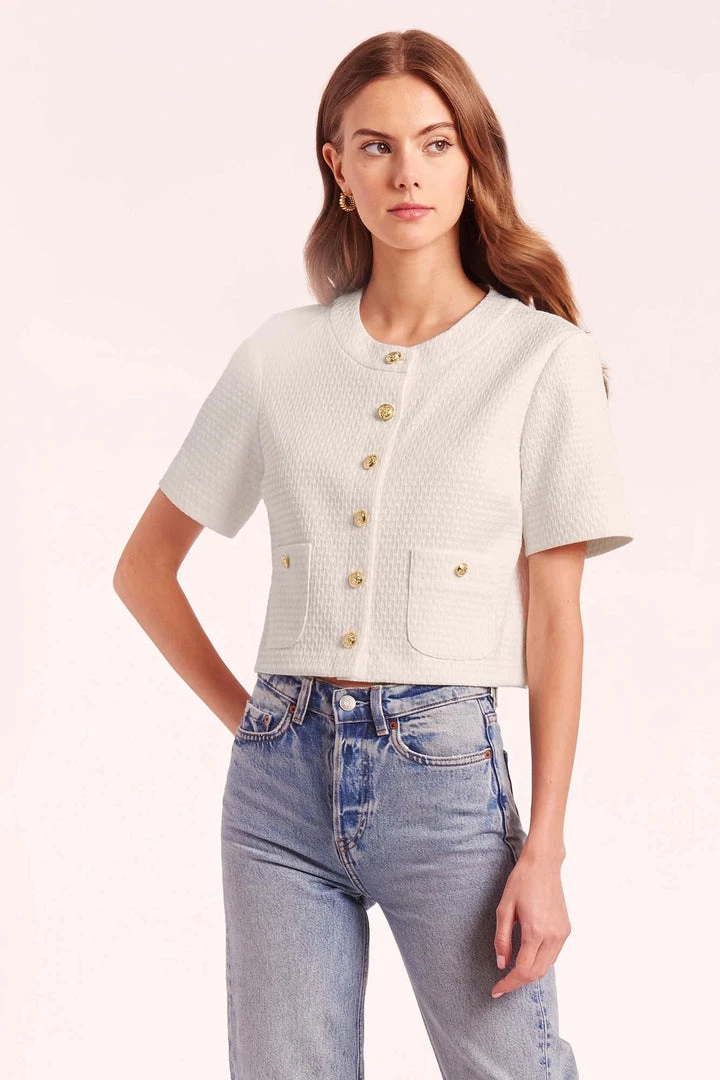 Get ready for summer in the Braswell Top! This crop top features a high neck and button detail. Style with denim shorts or our Braswell Skirt for a look we’re loving!