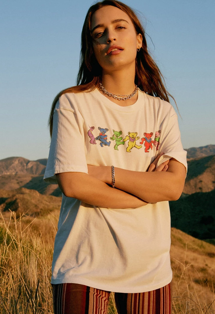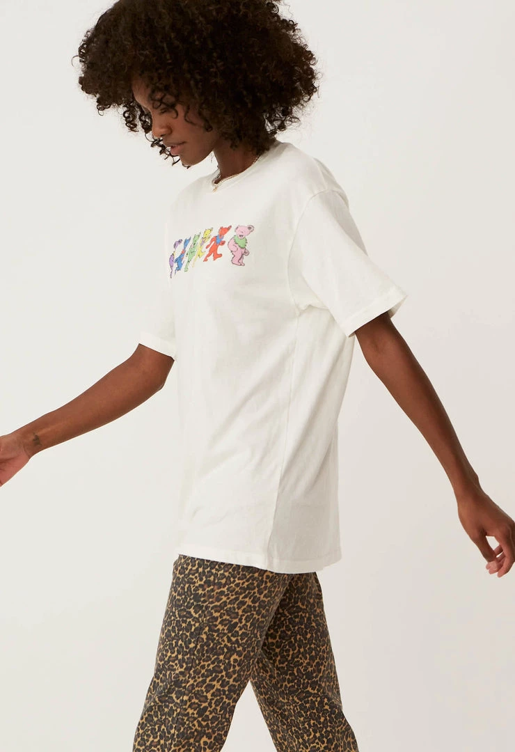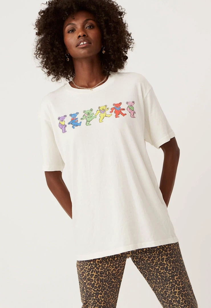 This daydreamerla.com exclusive style features the rainbow colored ‘Dancing Bears’ artwork, a cute & friendly iteration of the band’s spirit. Over the years it has been said that the bears are actually marching – regardless of their activity we are pretty into the way they look on our best selling Weekend Tee!