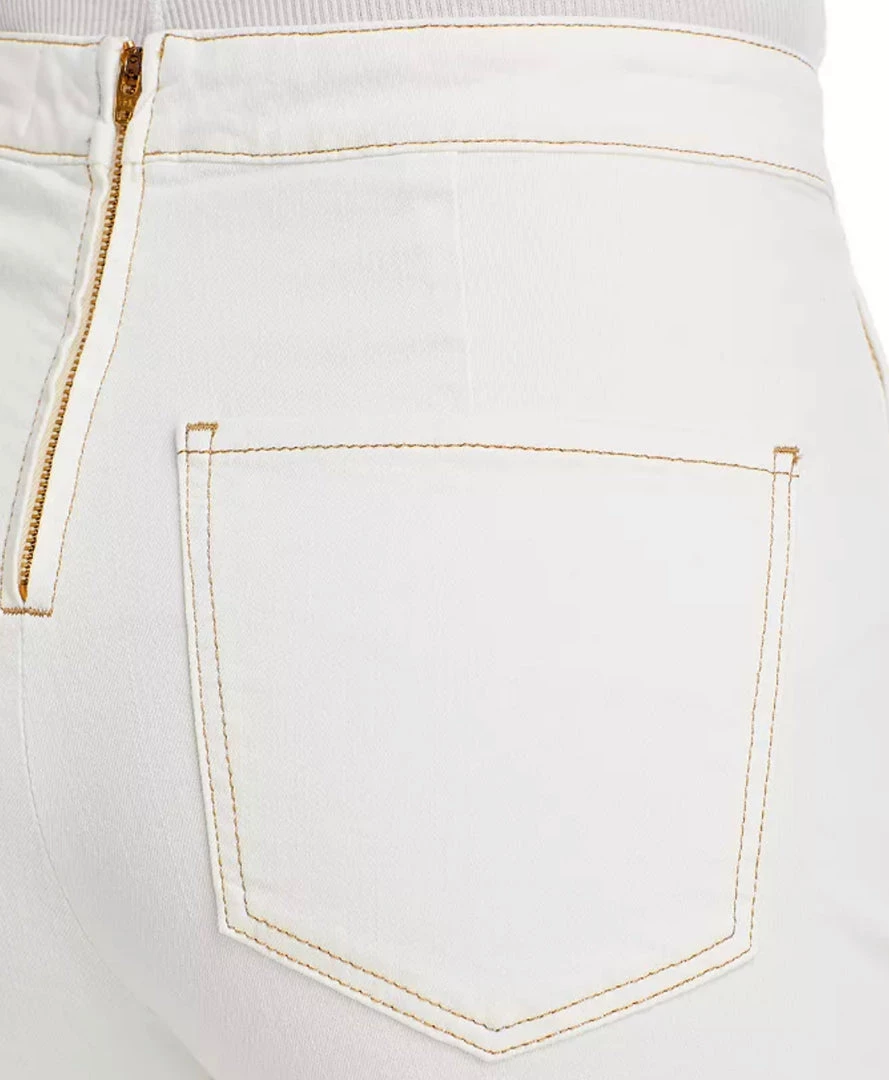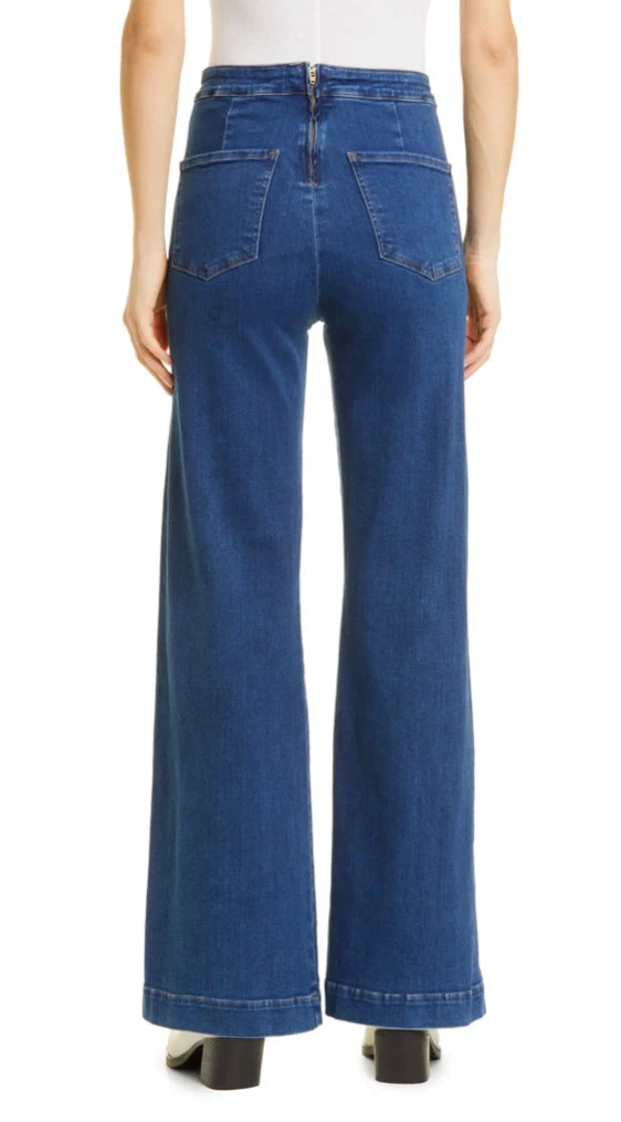 Exposed back zipper closure Snap button closure at hips Back patch pockets