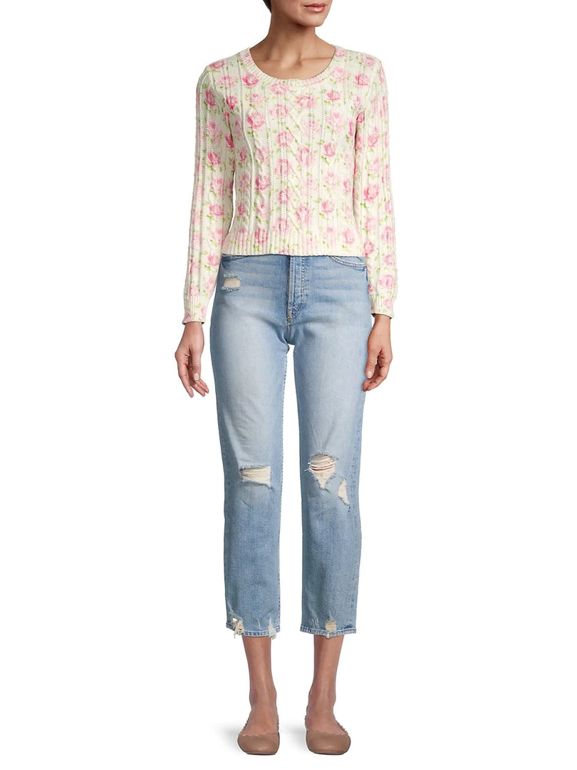 Our Easton Sweater is your new go-to staple in 100% cotton with our hero rose print of the season and a mix of vertical cable knit and lofty rope stitch detailing. This shrunken pullover has a slim fit and features ribbed cuffs at the scooped neck, sleeve openings and bottom hem.