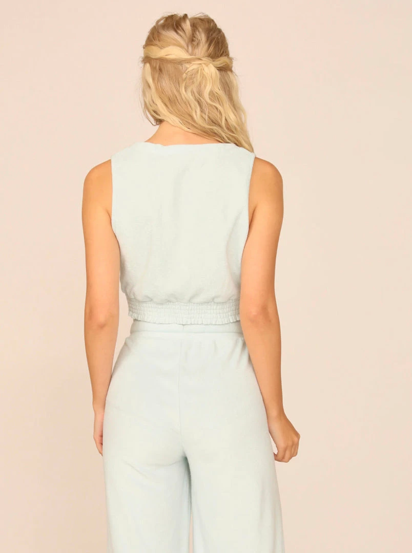 The Salty Blue Terry Cloth Surplice W/ Smocked Waist features: