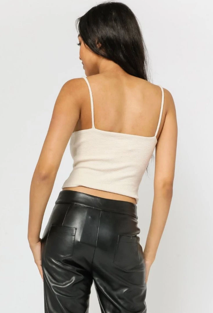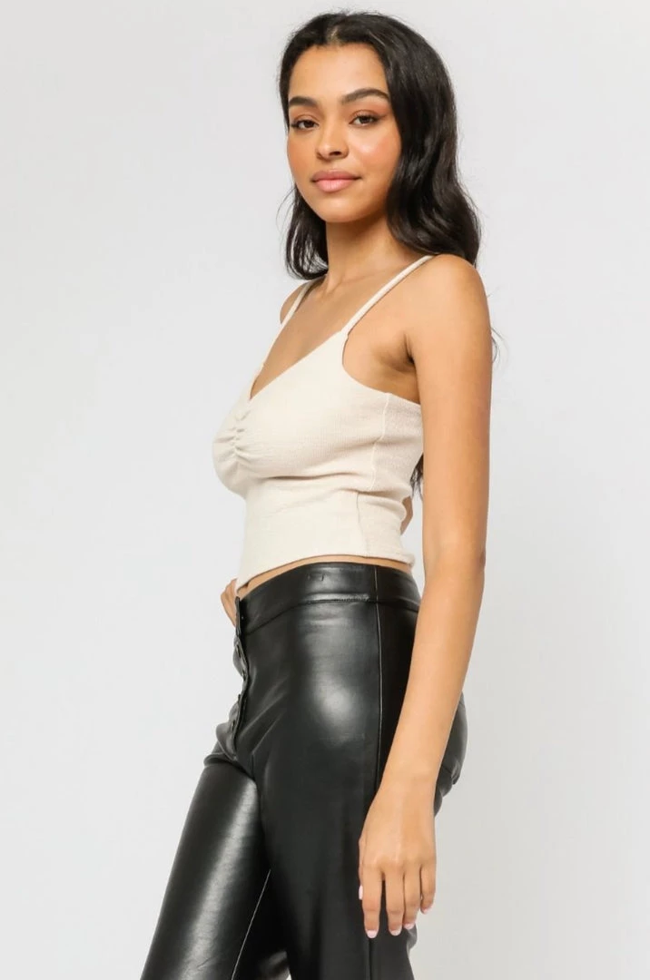 Our Cropped Tank Top features a ruched bust and spaghetti straps.