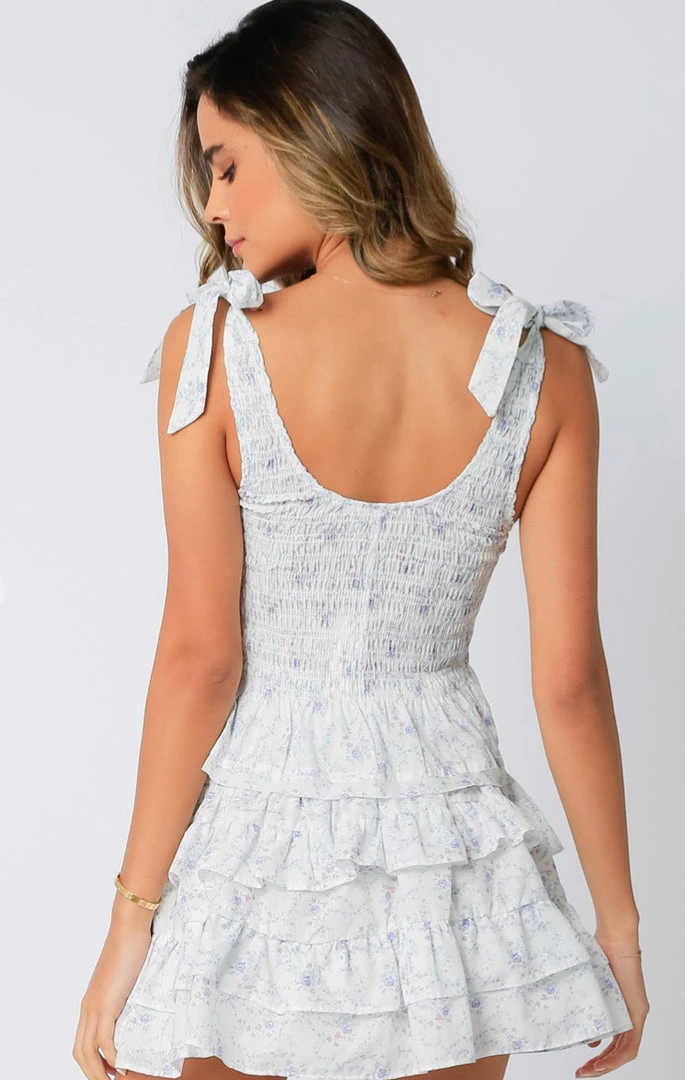 This Olivaceous White Smocked Top featuring a shoulder tie and a fitted fit. Woven.