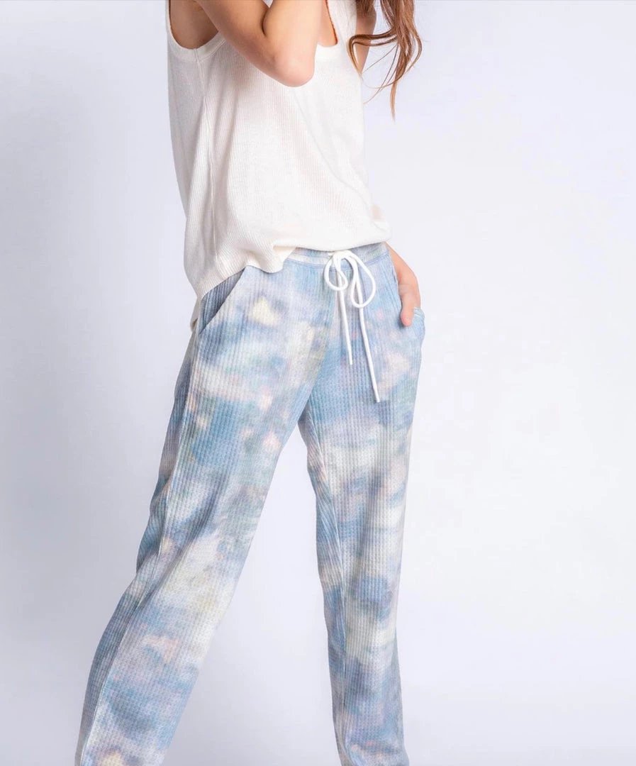 Get moody-dreamy vibes in a soft brushed thermal jogger. Lots of texture and muted colors make this an easy lounge pant to pair with a matching top or simple white tee.