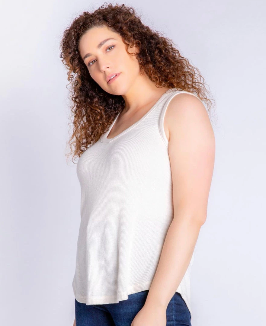 An easy, wear-anywhere, layer-with-anything tank top. With a rounded V-neck in soft 2×2 rib peachy jersey. Easy to wear out or give a casual tuck.