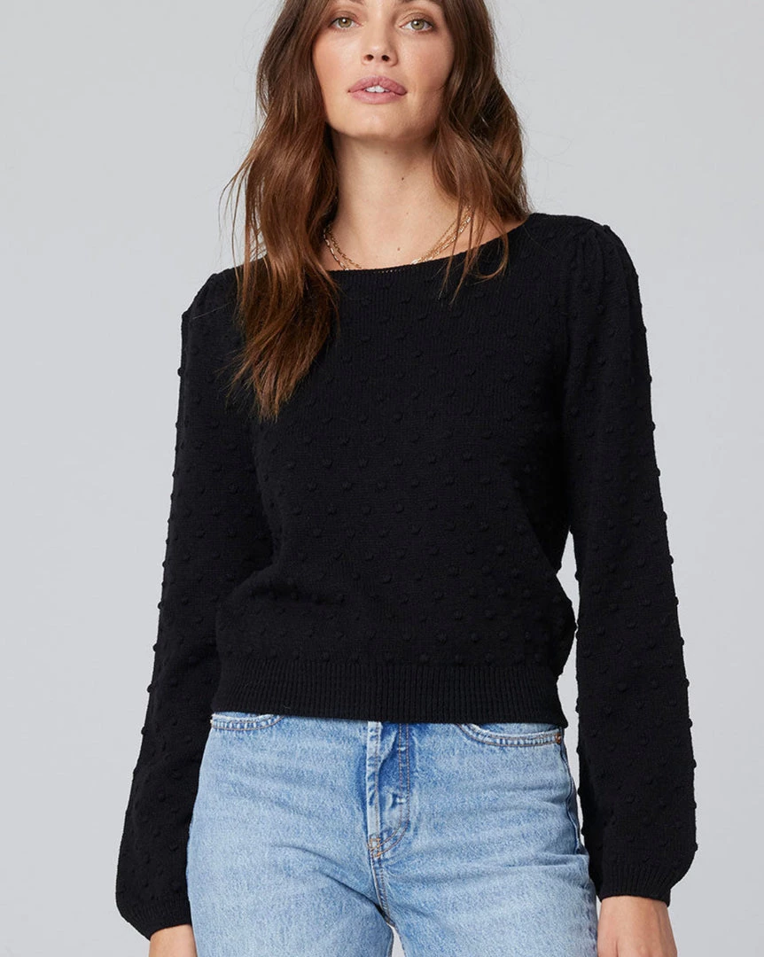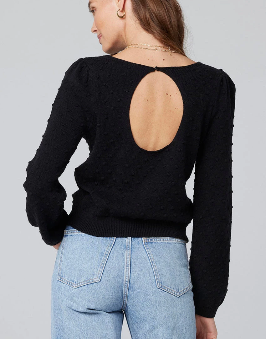Our Bordeaux Long Sleeve Sweater features imported Cotton and Acrylic material, and an open back for added flair.