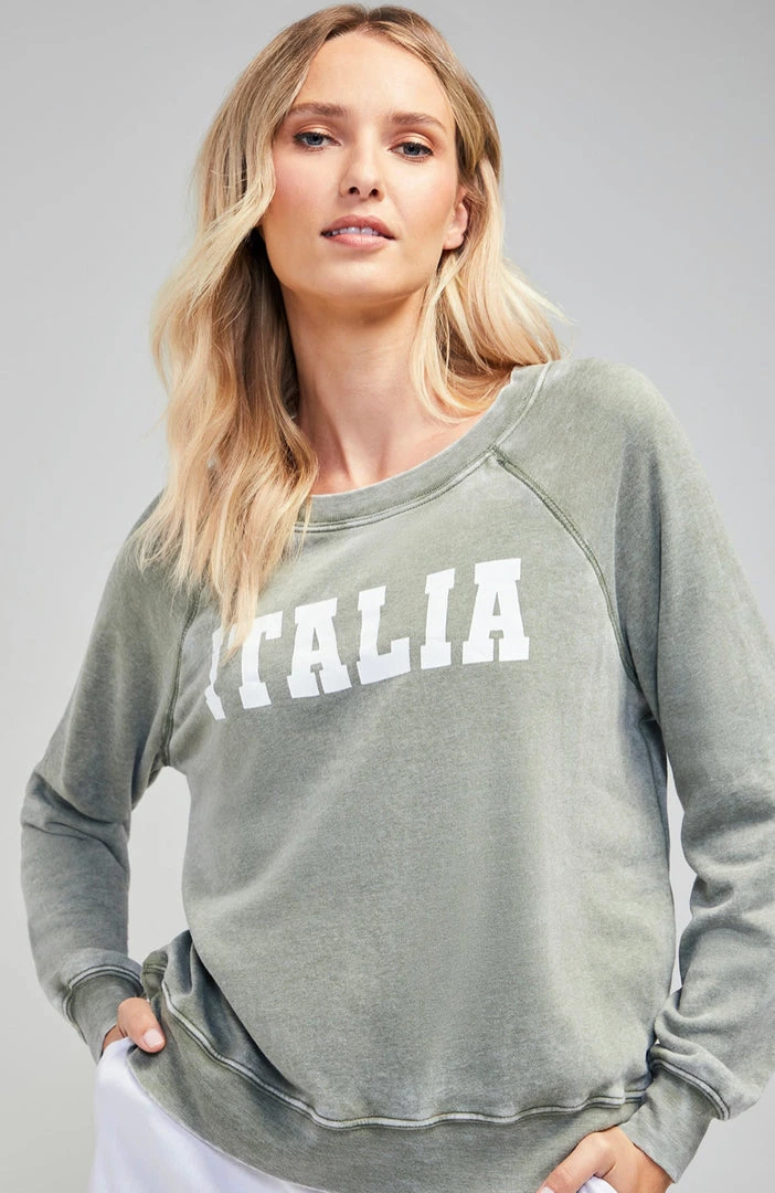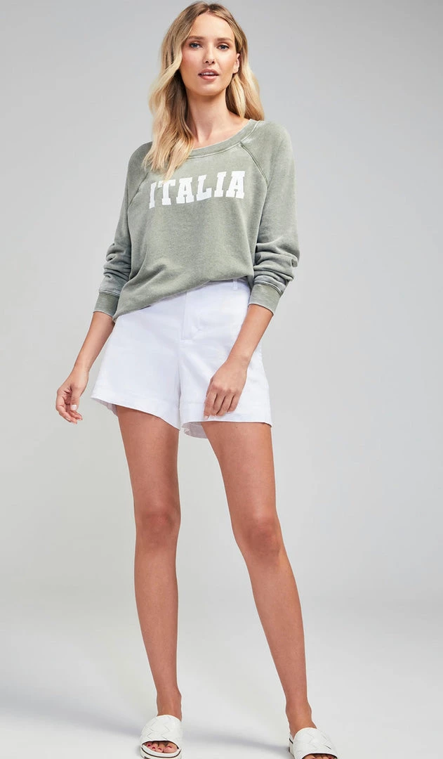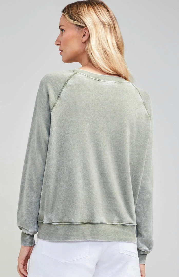 The Sommers Sweater is a vintage-inspired sweatshirt in cotton burnout fleece fabric with raglan sleeves, crewneck, and banded hems.