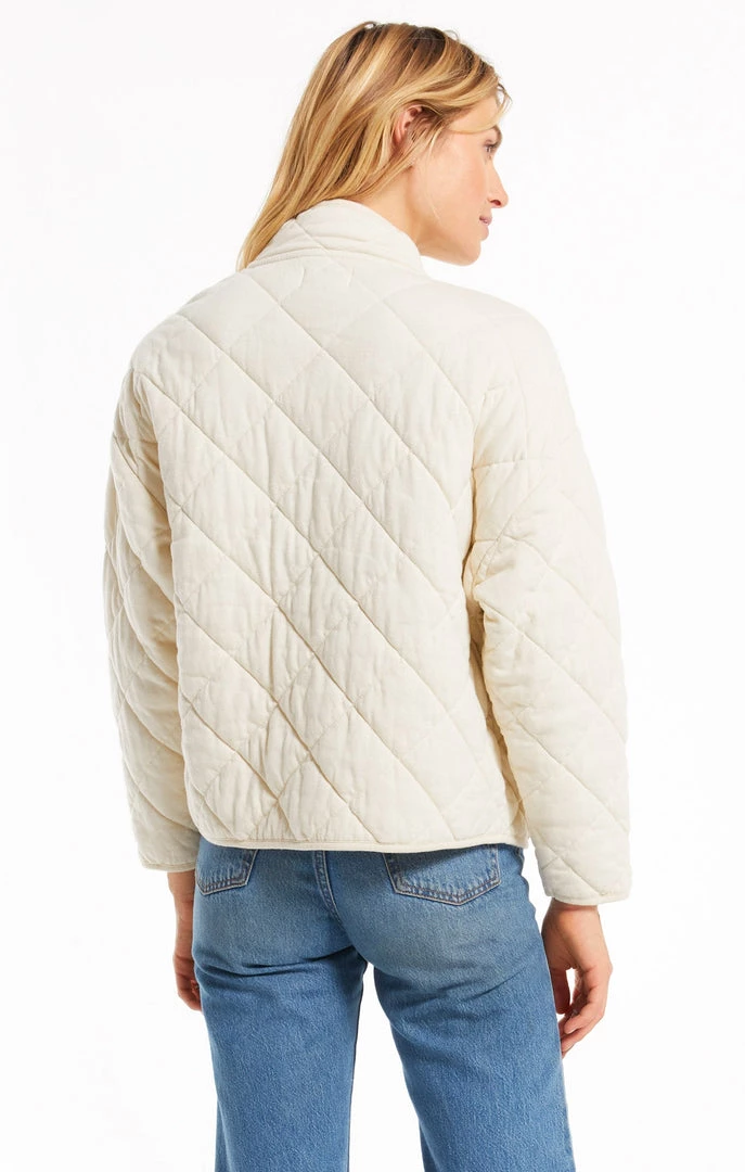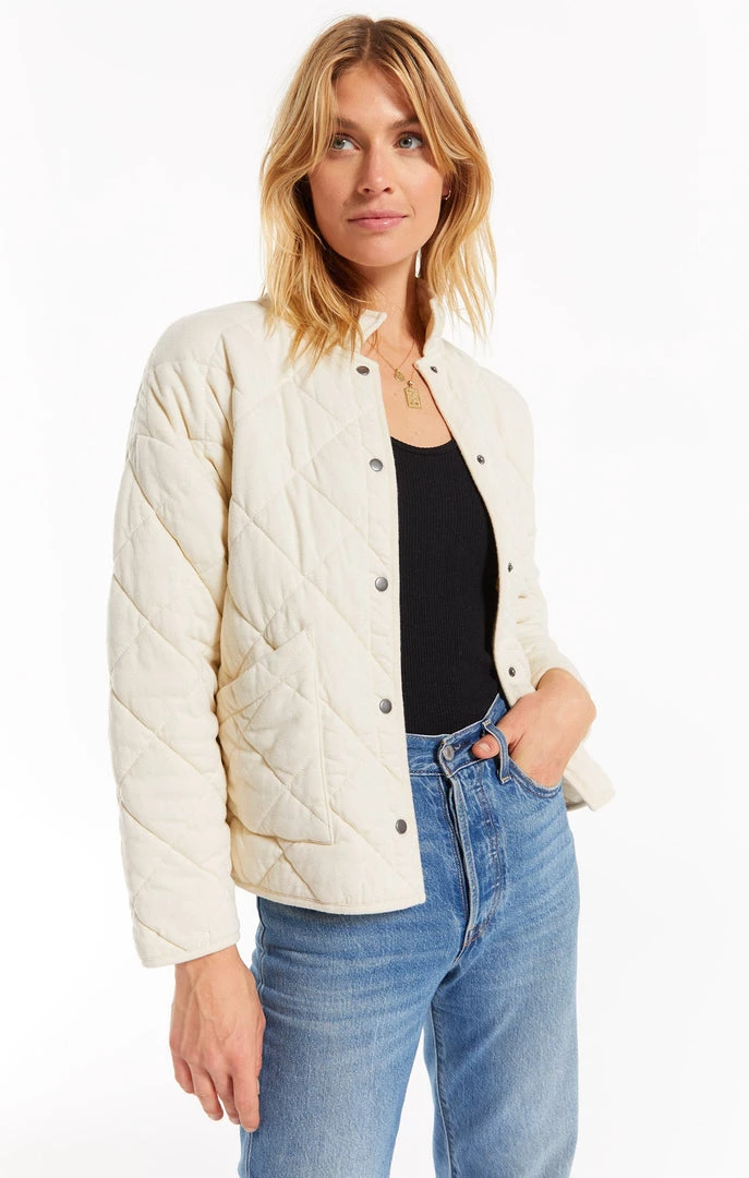 The Maya Quilted Jacket is an absolute essential this season! This lightweight puff jacket makes for the perfect transitional piece from cool to cold weather. This jacket features a drop shoulder and a stylish boxy fit. Made from a cotton/poly jersey knit fabric, we know you’ll love all the details such as the collar, snap-front closure, and patch pockets.