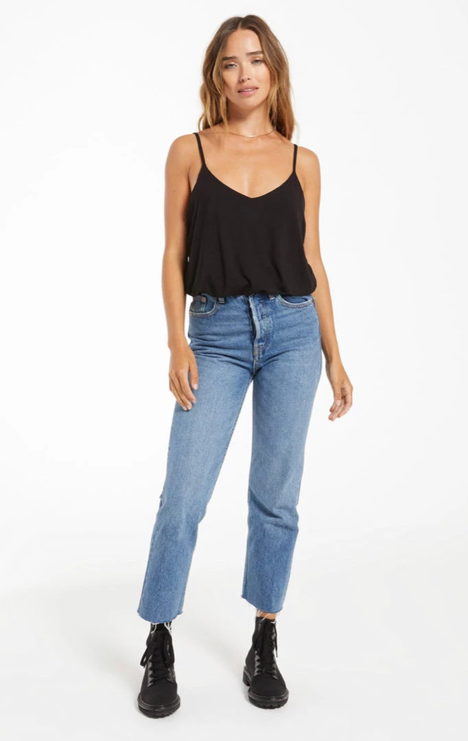 Our Mirabel Sleek Tank is made from our ultra soft Sleek Jersey fabric, and is a great elevated top for going out. It features adjustable spaghetti straps, a soft v-neckline, and elastic, slouchy hem. Pair with high-waisted jeans, your favorite night-out shoes and a necklace for an easy night-out look.