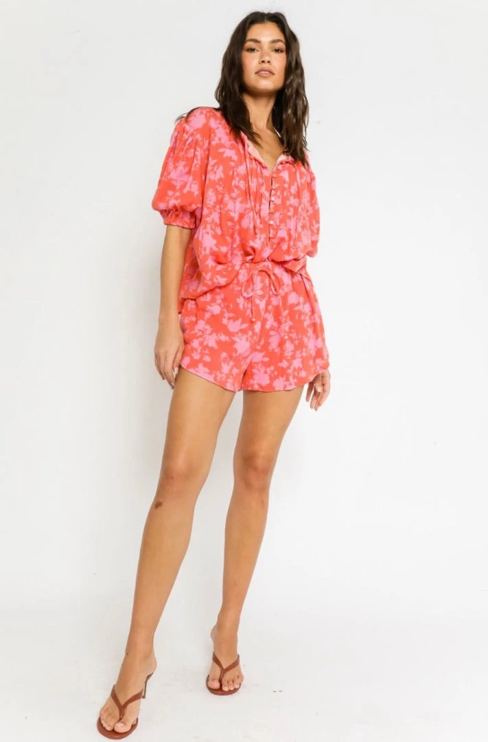 Our Olivaceous Hibiscus Shorts feature a drawstring waist and relaxed fit.