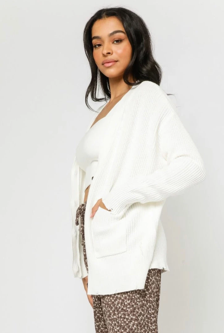 Our Olivaceous Button Up Cardigan features a relaxed fit and v neck.
