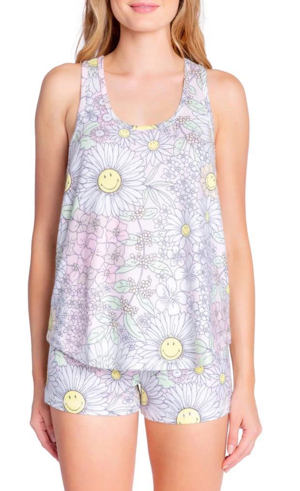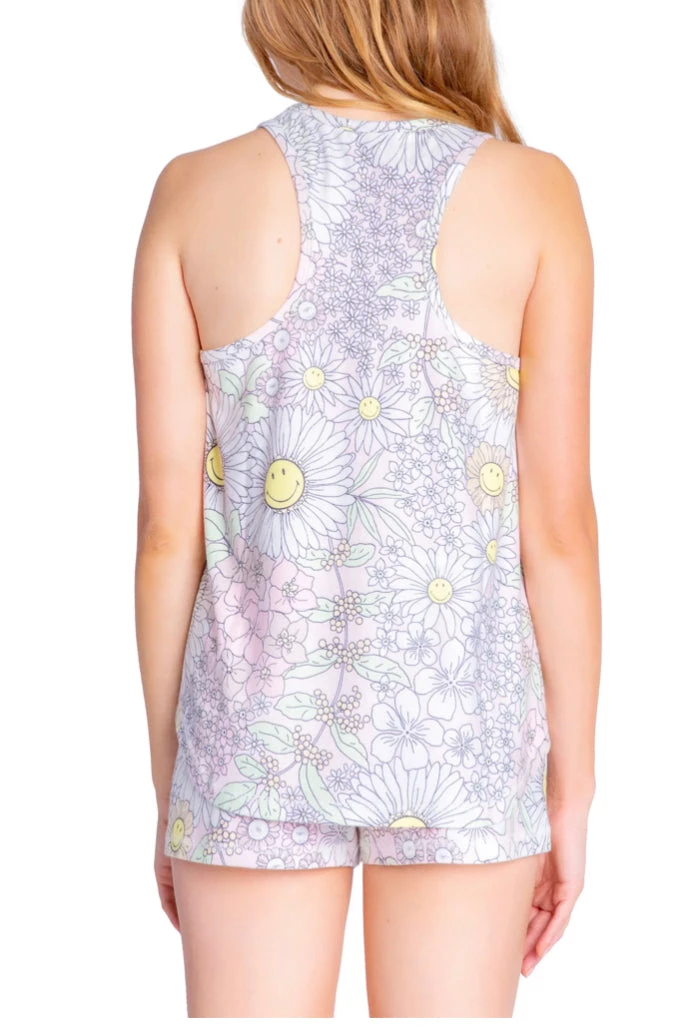Sleep easy in this soft slub-jersey tank covered in a happy flower print and finished with an easy-moving racerback.