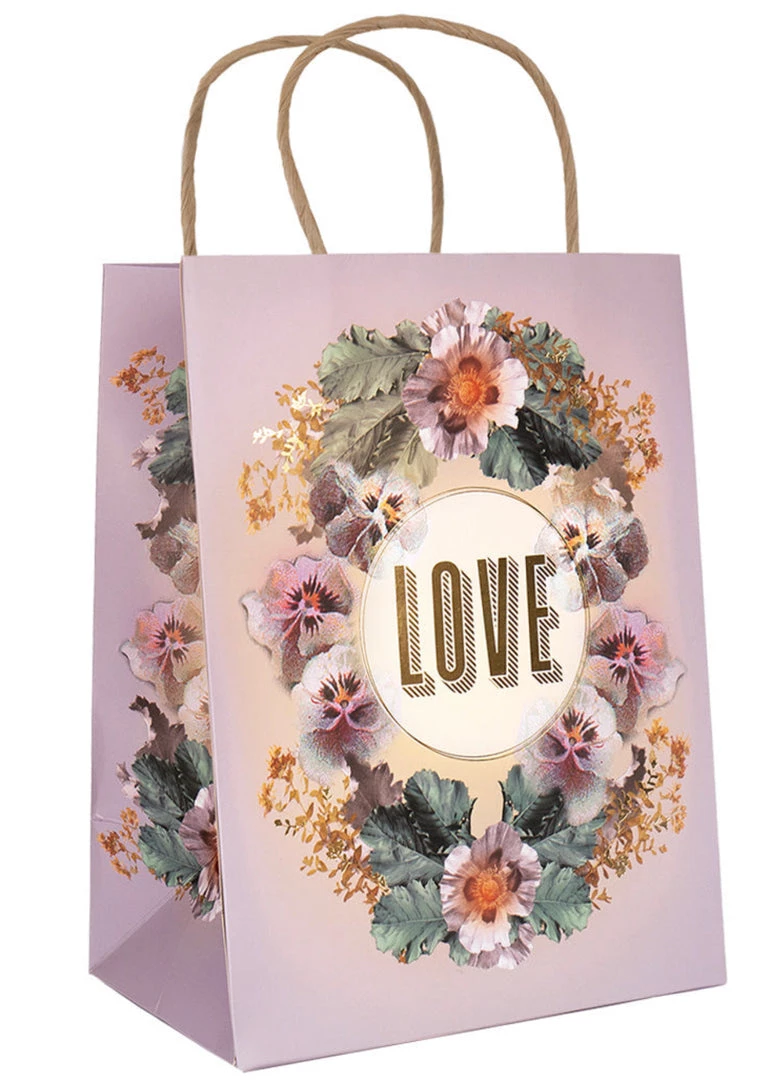 The prettiest floral party bag we ever did see. PAPAYA’s all occasion Love Pansy Gift Bag is saturated with a vibrant wildflower wreath, delicate leaves and a cheerful purple toned backdrop that adds a unique and festive flair to an assortment of special occasions. Celebrate with an impression and use these beauties for goody bags, party favors, decorations, showers, supplies, treats, gifts and more.