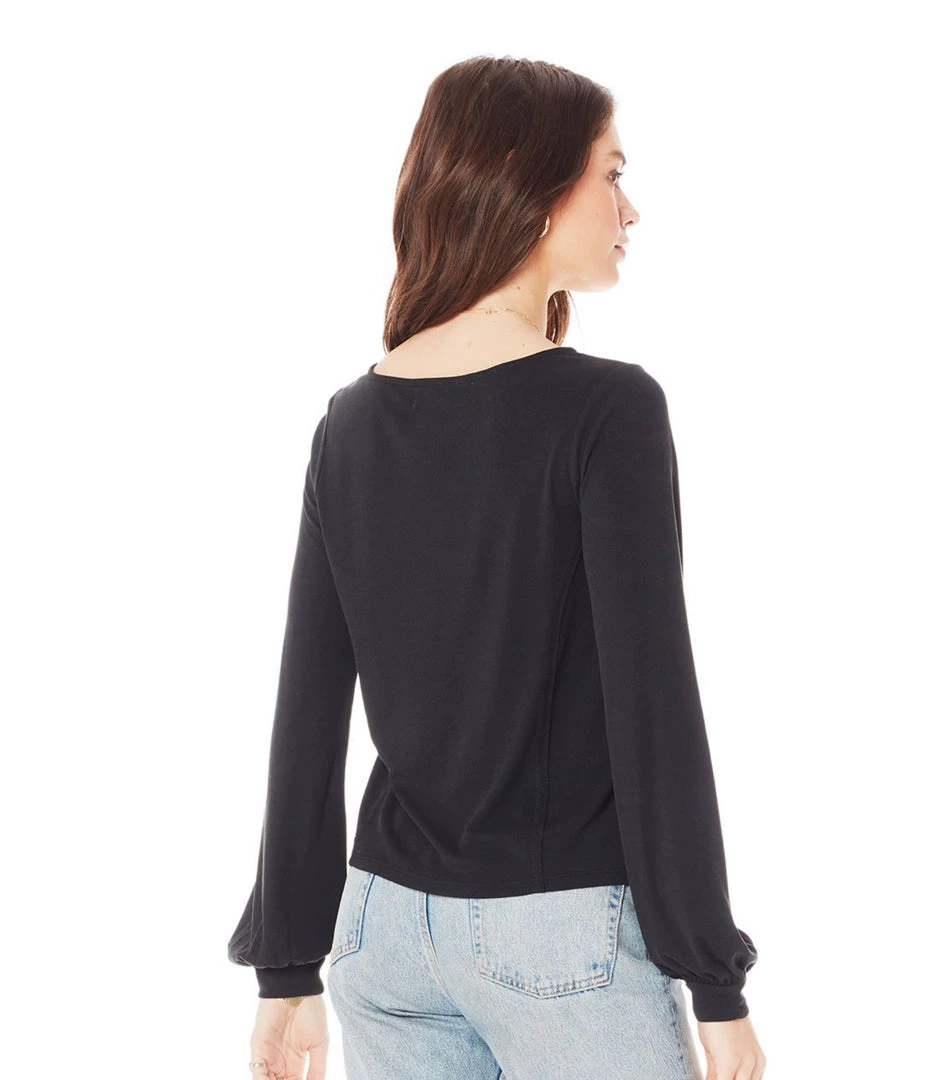 With the look of a fancy top and the comfort of a casual tee, this ribbed cuff top has it all figured out.