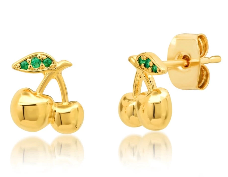 TAI GOLD CHERRY EARRINGS W/ CZ JEWELRY