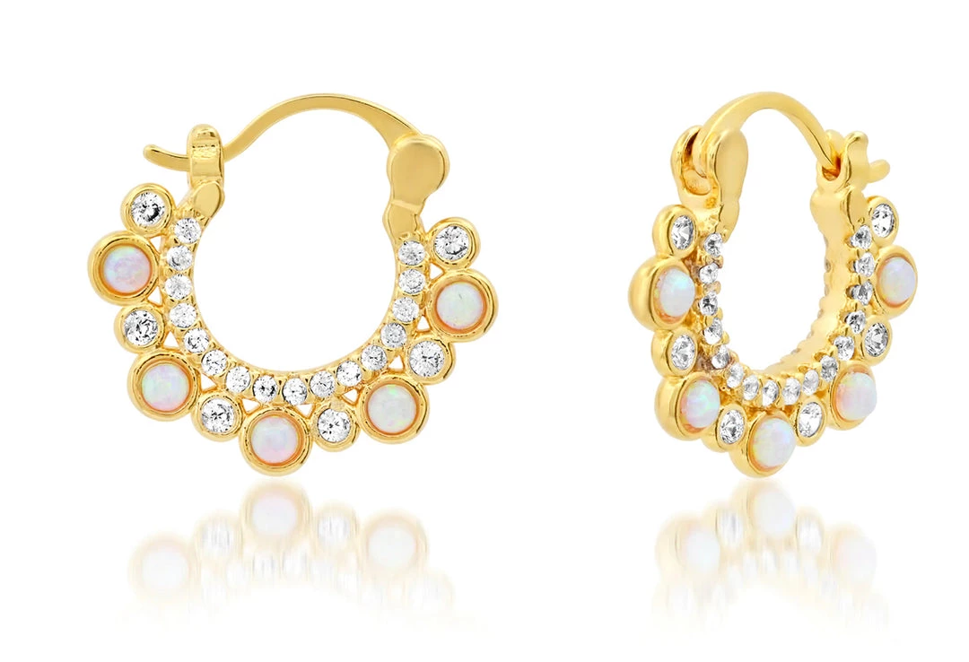 Stunning opal studded huggies with CZ accents, wear on the reverse for a simple gold and pavé studded look.