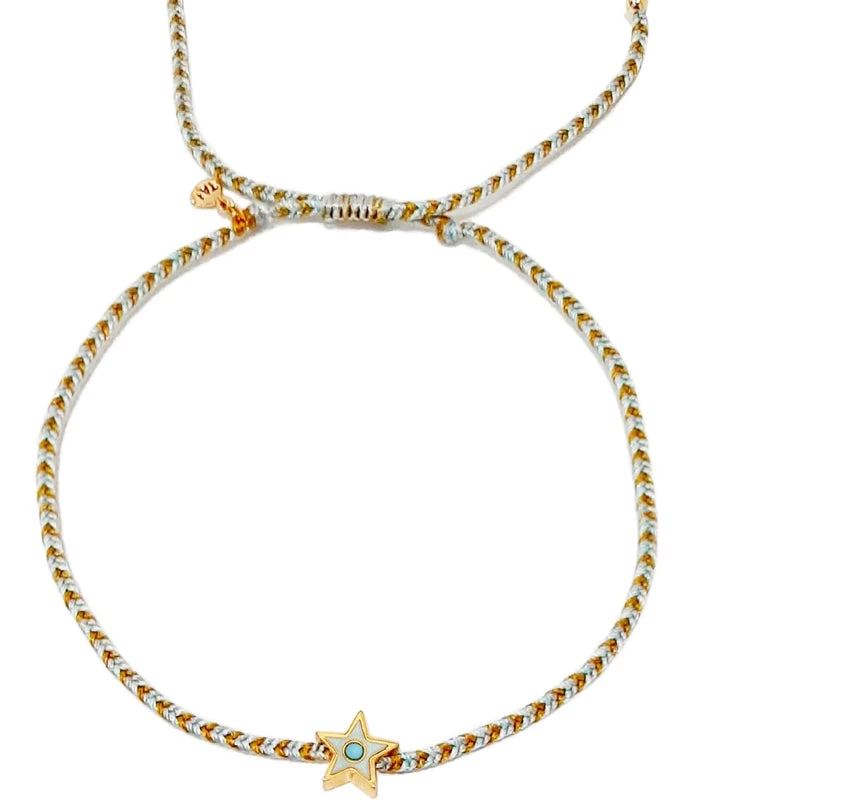 Show off your fun, whimsical side with this handmade woven bracelet with enamel charm detail!