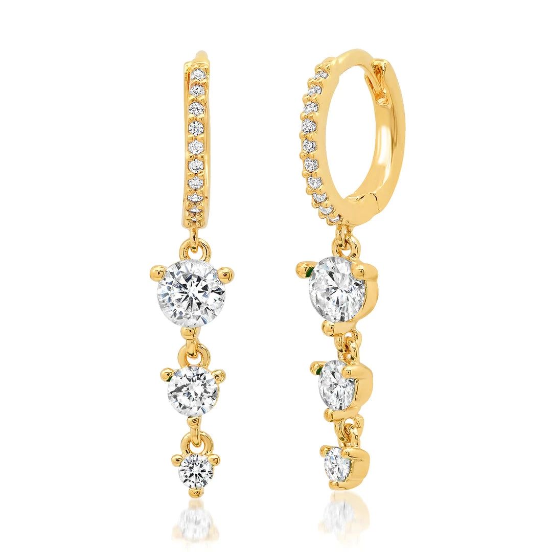 Glam it up with these pave CZ huggies adorned with 3 glass colored stones!