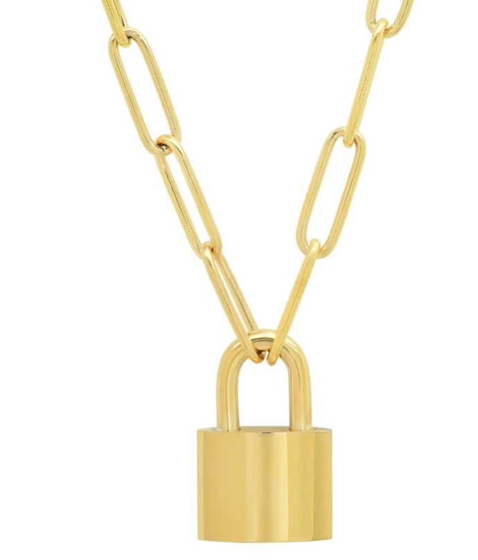 Show off your style in this chunky gold link chain with padlock pendant. Great for layering with other chains in your jewelry collection.
