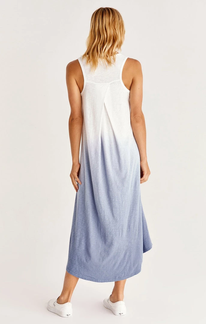 Offered in our 100% Cotton Slub, the Amalfi Slub Dip Dye Dress is the perfect lightweight dress. Features include on seam pockets, high low hem, pleat at the back, and offered in a soft ombre Ocean color.