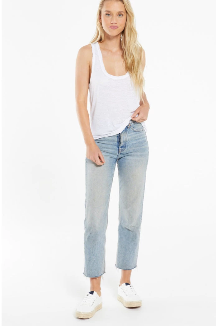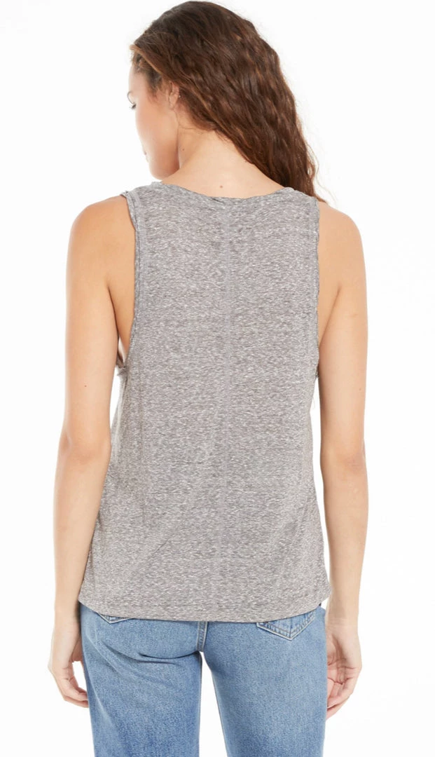 The Billie Triblend Tank is made from our soft Triblend Jersey fabric and offers a luxurious feel and drape. The subtle twist detail at the neck and armhole opening, and raw edge along the center back, gives this tank a unique appeal.