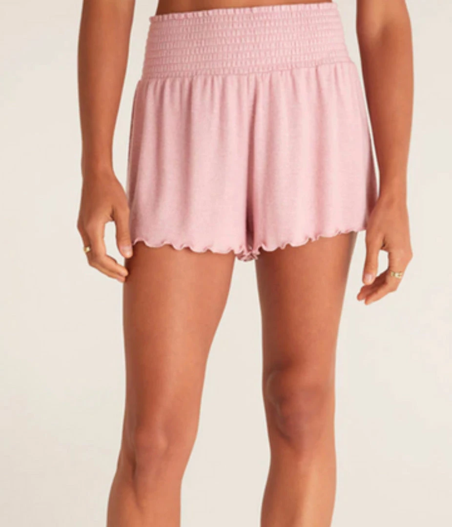Frilly and feminine, the Dawn Smocked Short is made from our comfiest Brushed Sweater Knit fabric and features a wide, ribbed elastic waist.