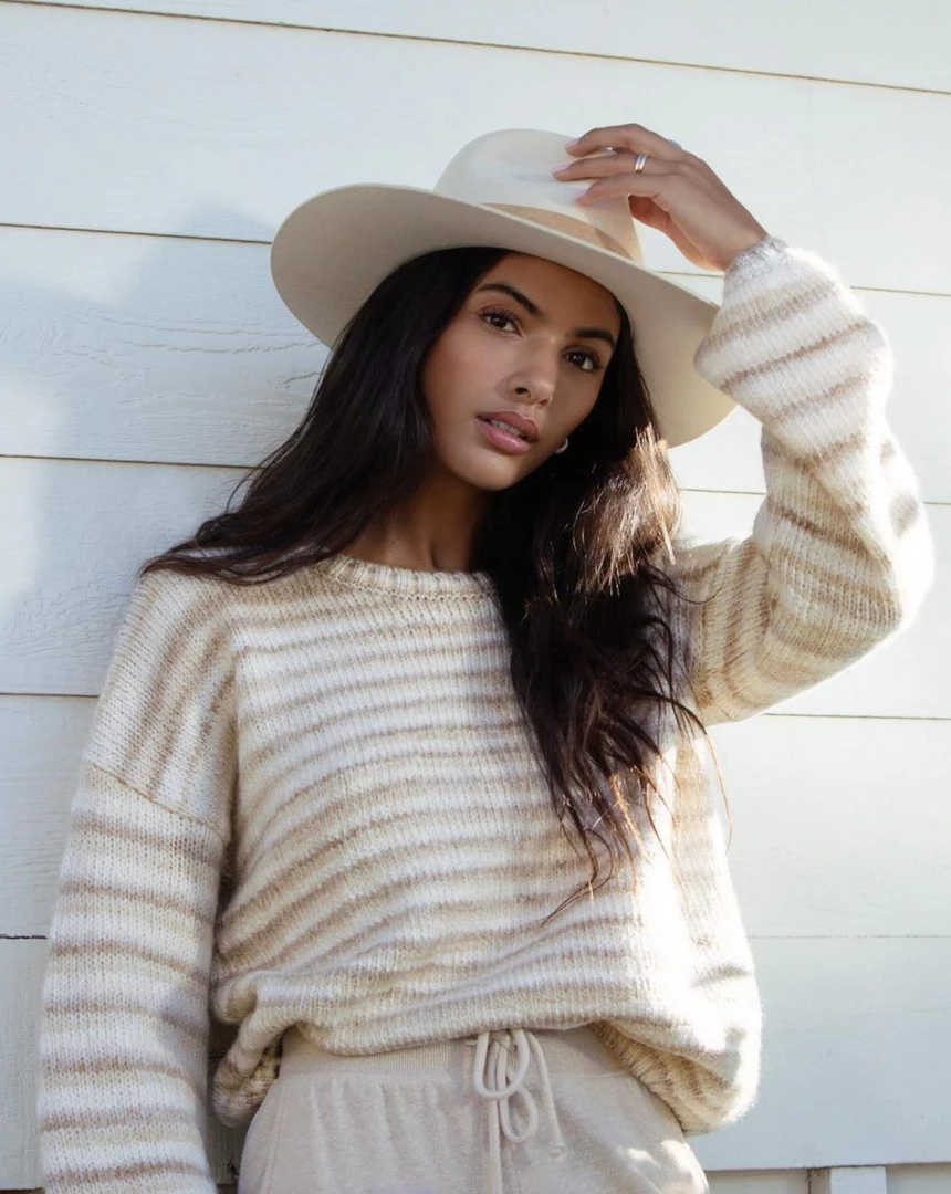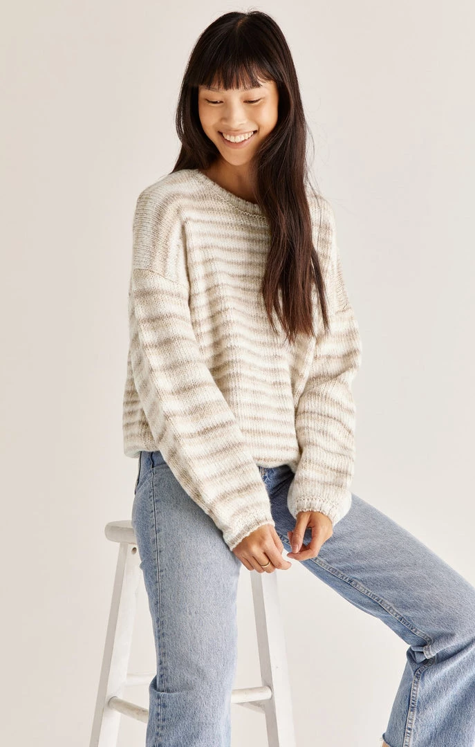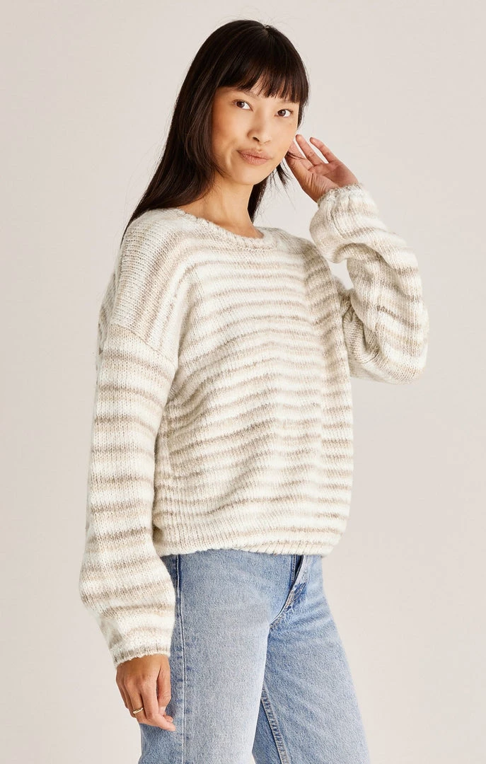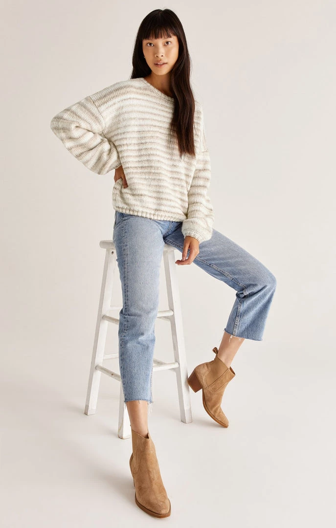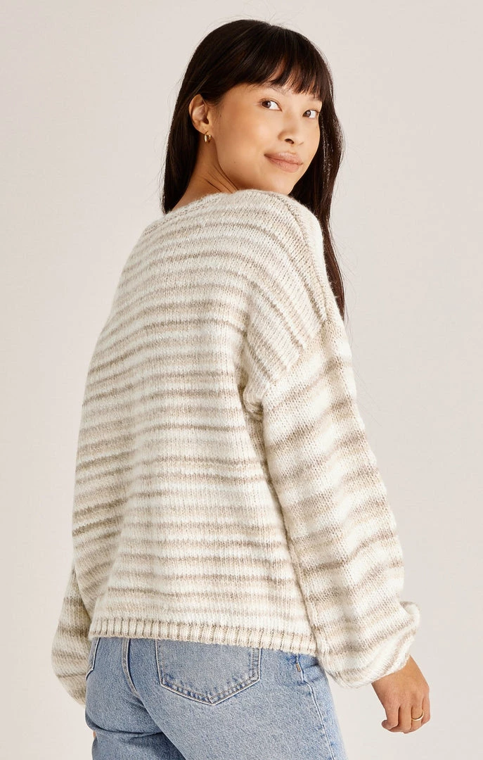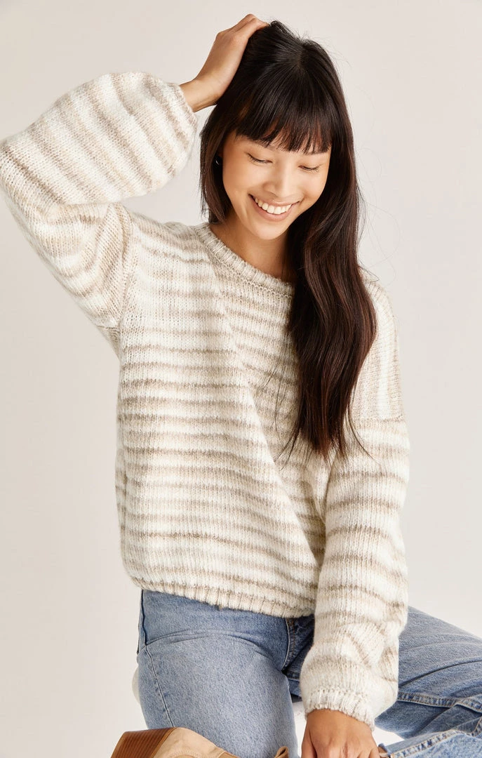 You can’t go wrong with the Piper Ombre Stripe Sweater! The stripes are soft and neutral in a cozy textured yarn. The fit features a feminine balloon sleeve and relaxed fit.